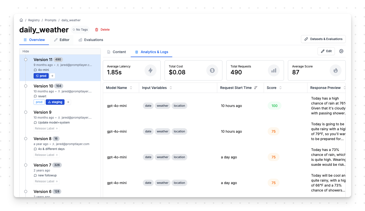 This frequent updates make it essential to have a system that can track performance across different models, prompt versions, and user segments—a core value proposition of prompt management tools like PromptLayer.
