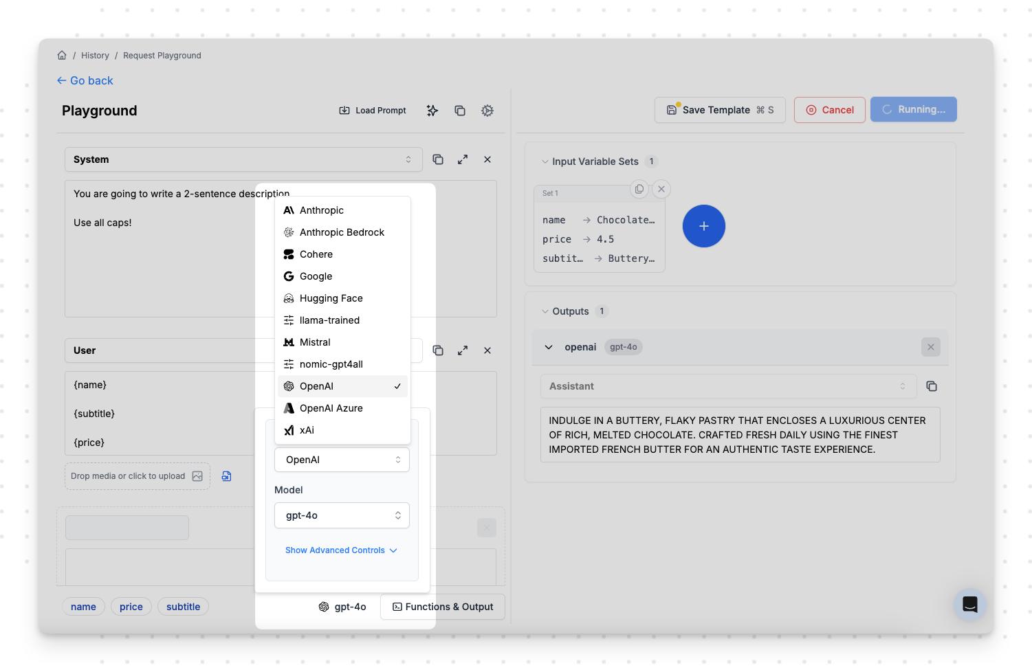 Effective evaluation requires not just running tests but managing test sets, tracking results over time, and comparing performance across different prompts and models. Read more about advanced eval strategies.