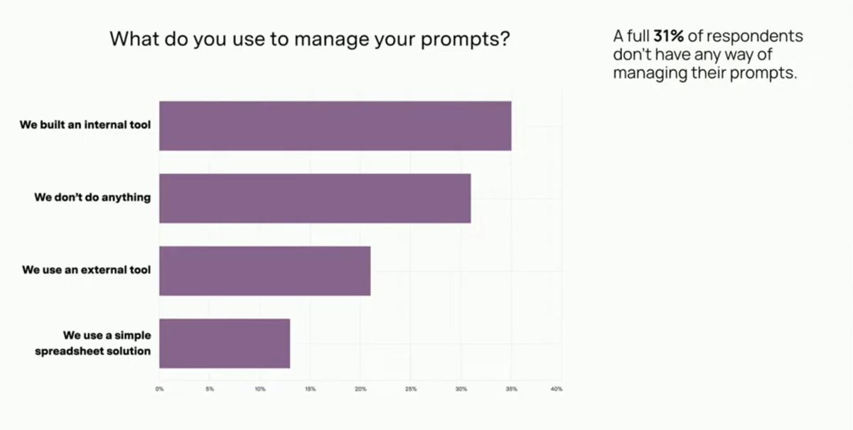 The fact that nearly a third of teams lack prompt management tooling, combined with the frequency of prompt and model updates, suggests significant opportunity for platforms that can bring structure and observability to LLM operations.