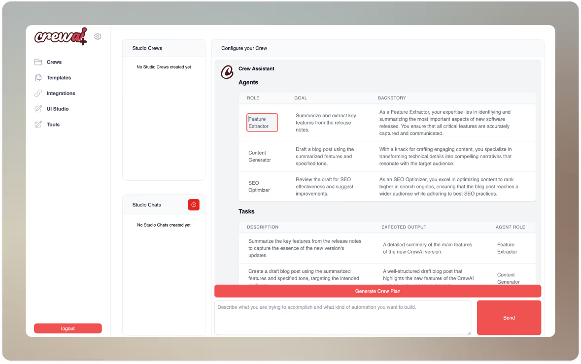 - Crews encapsulate agents in well-defined roles (“manager,” “worker,” etc.), supporting “org chart” style collaboration.