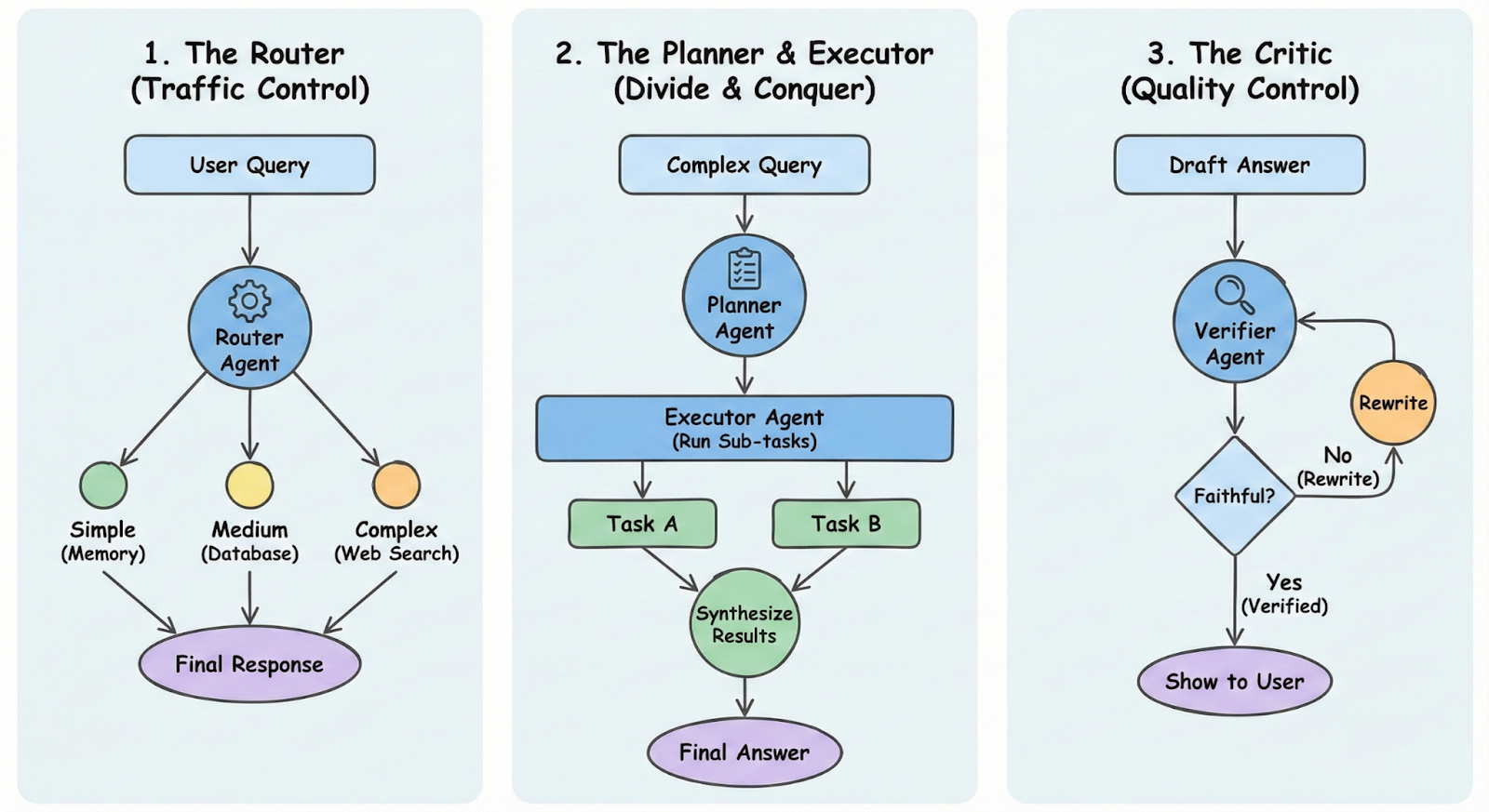 Instead of treating every query the same, a "Router" agent analyzes the user's intent first.
