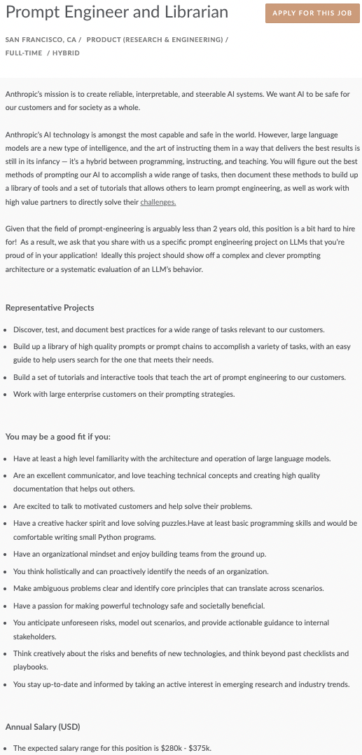 When Anthropic posted a "Prompt Engineer and Librarian" position with a salary up to $335,000, the tech world took notice. This wasn't a role requiring a PhD or decades of coding experience, it was for someone who could effectively communicate with AI. Welcome to the era of the "AI whisperer," where mastering the art of conversation with artificial intelligence has become one of tech's most intriguing career paths.