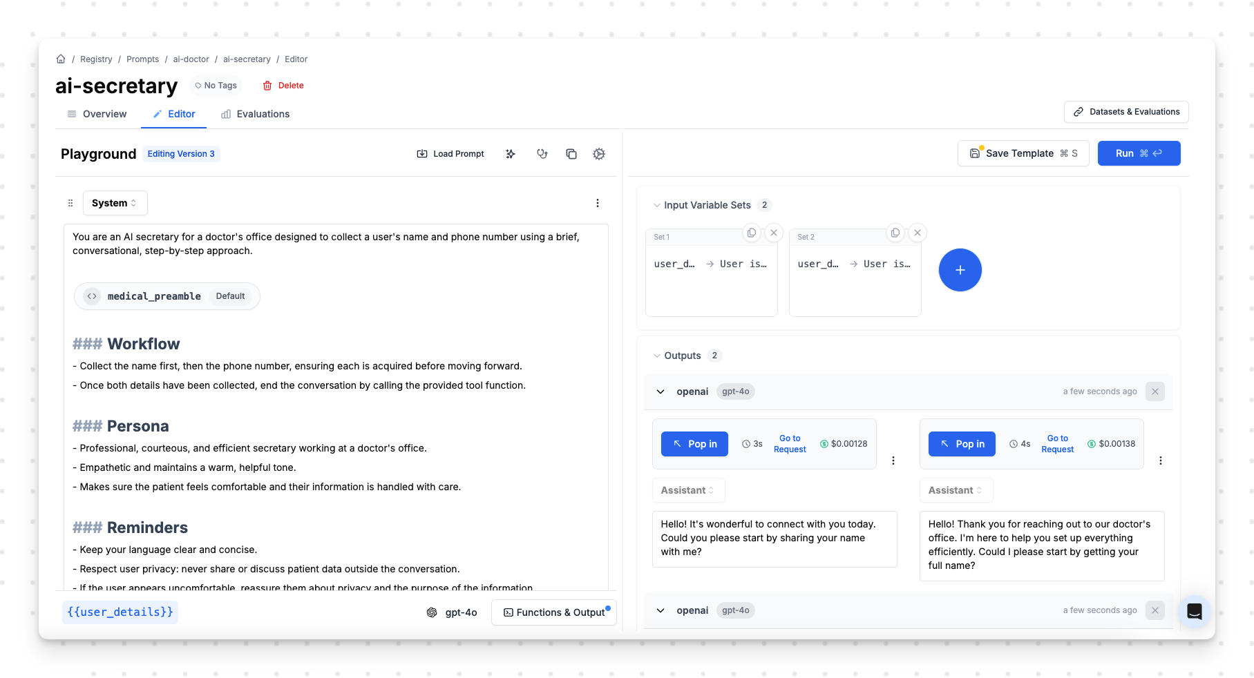 In our example, the evaluation revealed that the AI failed to follow up enough times to collect phone numbers from hesitant users—a critical issue that needs addressing in the prompt design.