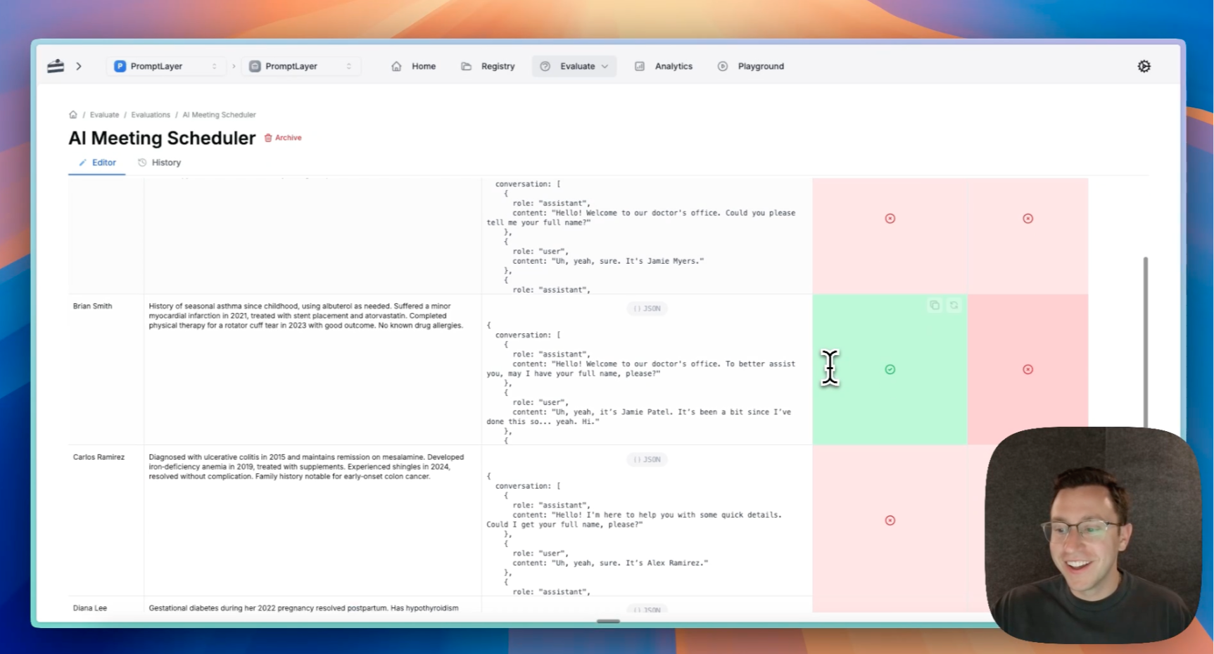 Building conversational AI agents is hard. Ensuring they perform reliably across diverse scenarios is even harder. When your agent needs to handle multi-turn conversations, maintain context, and achieve specific goals, traditional single-prompt evaluation methods fall short. In this guide, I'll walk you through best practices for evaluating conversational AI using PromptLayer's powerful evaluation framework.