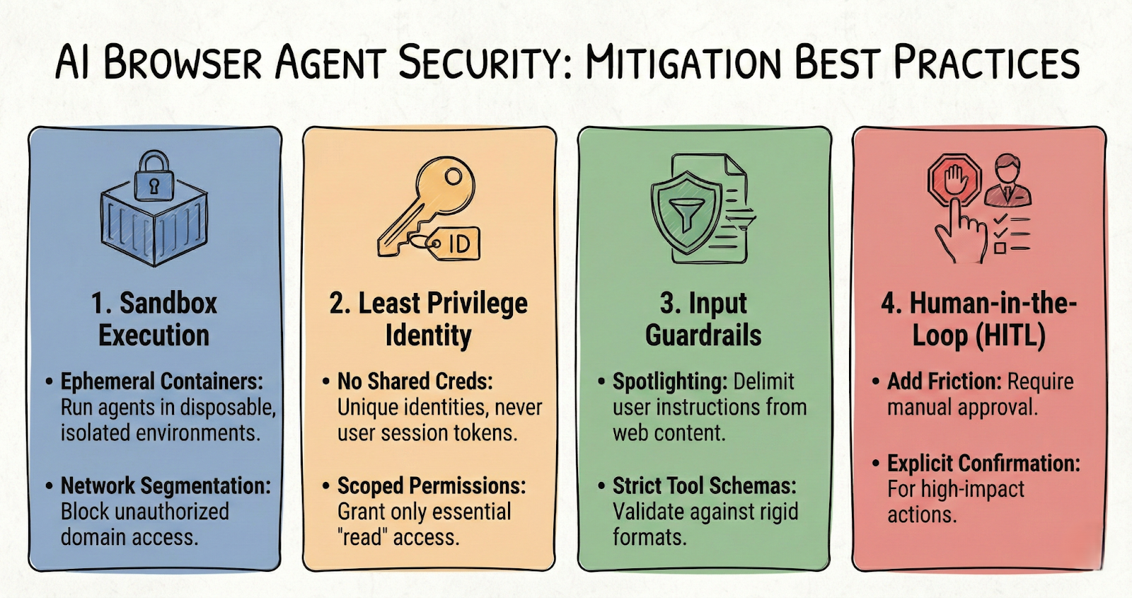 The practical takeaway: don’t bet your safety on smarter prompts. Win with boundaries. Lock down permissions, sandbox execution, and put friction (human confirmation) in front of high-impact actions. Then instrument everything - because if you can’t trace why an agent clicked, you can’t defend it.