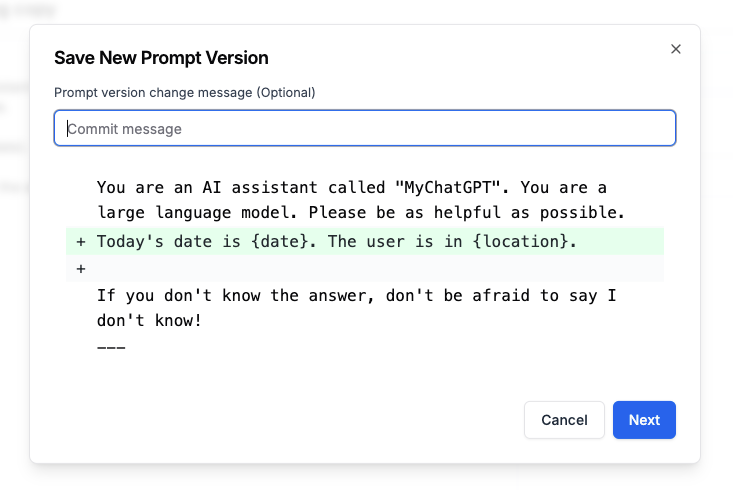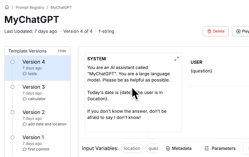 Be prepared for your prompt to change a lot. If you deploy your MyChatGPT to real users, you are going to find a lot of edge cases and get a lot of feature requests. These will creep into your prompt and you will find yourself with hundreds of new versions. The first step to maintainability is to be intentional when selecting the stable production version.