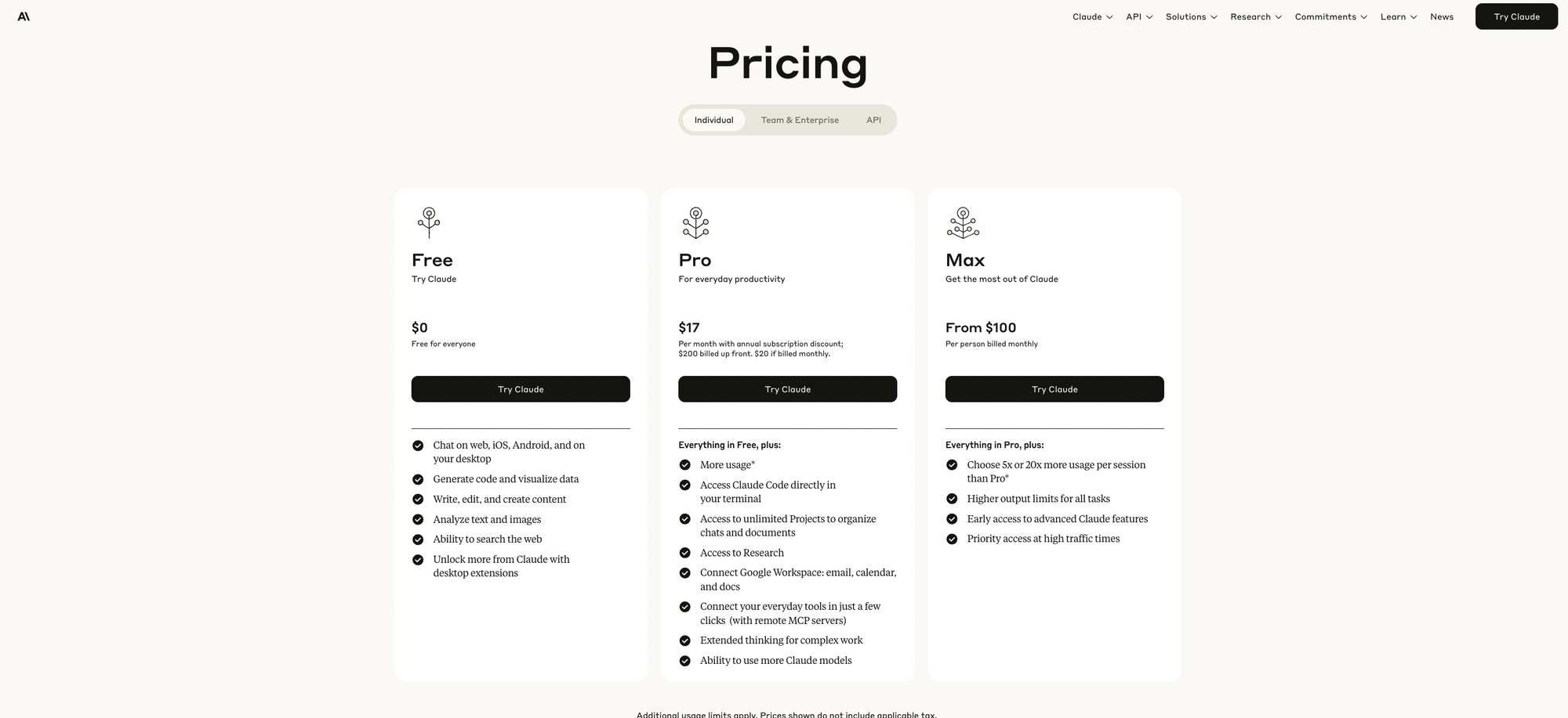 Claude's subscription tiers create a clear ladder from free exploration to enterprise-grade deployment: