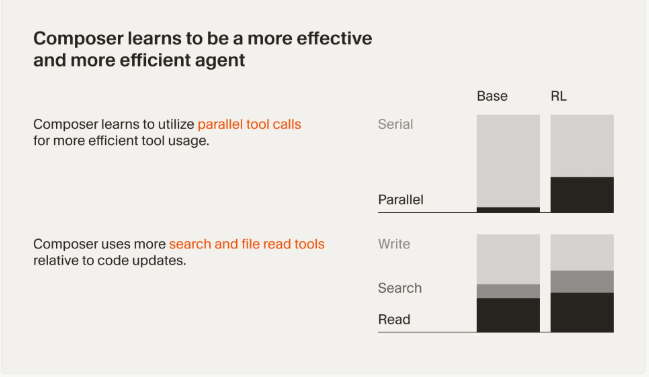This reinforcement learning approach, implemented on custom infrastructure using thousands of GPUs, allowed Composer to learn emergent behaviors that weren't explicitly programmed. The model discovered how to: