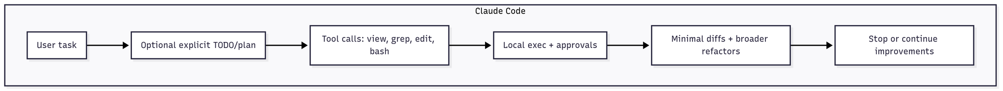 Despite their shared foundation—single loop, tool use, diff-first editing, user approvals—each tool has distinct strengths.