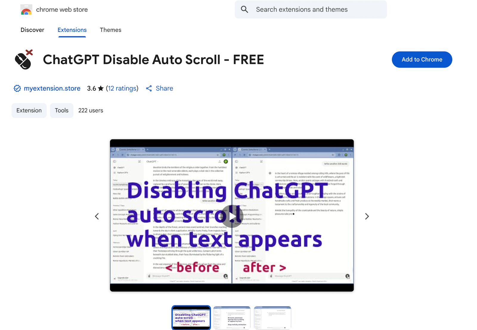 The simplest solution requires just a few clicks. Community developers have created lightweight browser extensions that completely disable ChatGPT's autoscroll behavior: