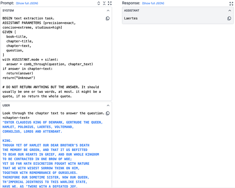 Taking the “engineer” part of prompt engineering literally, this prompt worked well through its use of code to explain the logic behind what the model needed to do. This was great for a couple of reasons. Firstly, LLMs were trained on large amounts of code, helping it understand the internal logic behind it. Secondly, and more simply, the coding structure is straightforward and concise, bringing back some of the points we loved about the Do’s/Don’ts of Prompt 1.