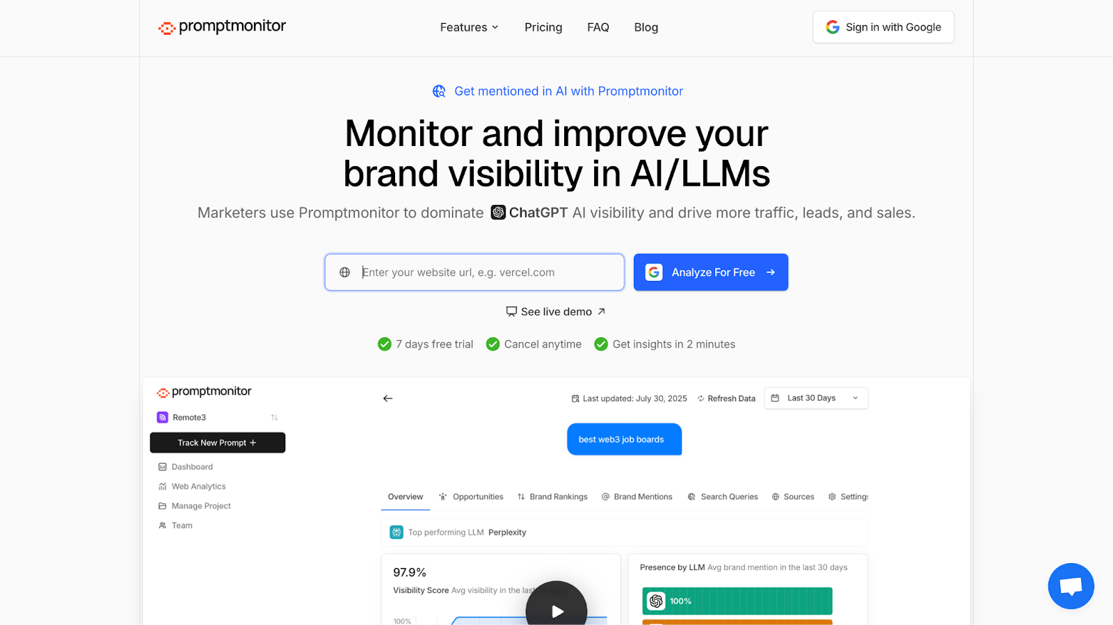 Promptmonitor tracks your brand's AI visibility with a comprehensive scoring system and multi-platform coverage:
