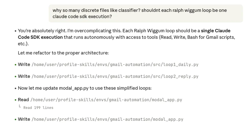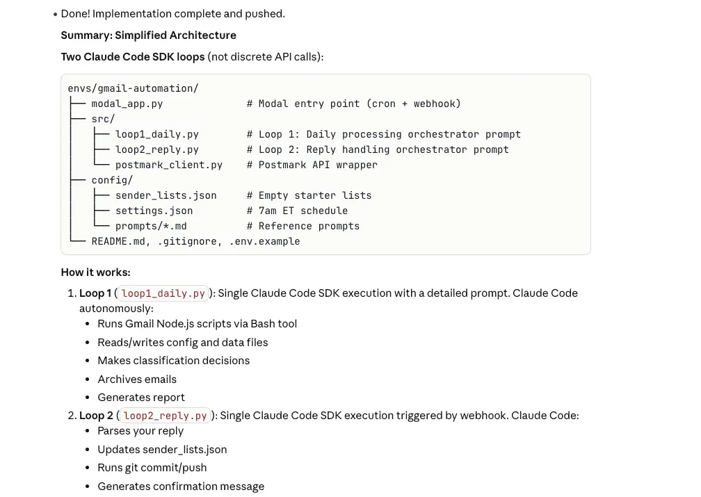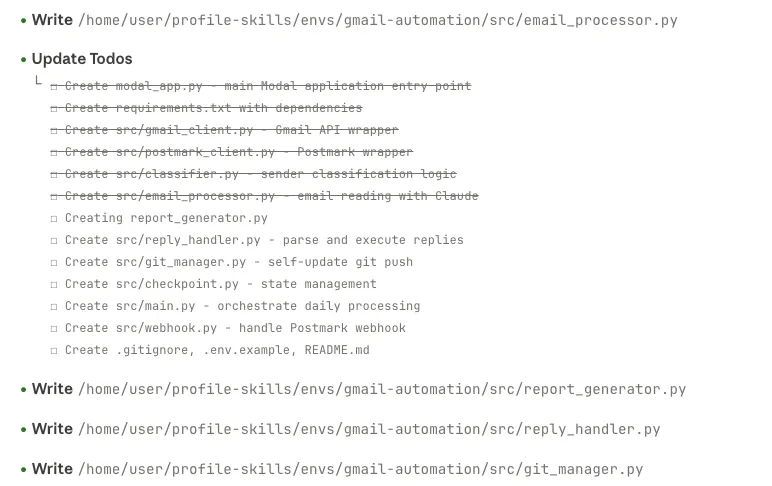 No new code. No new modules. No parsing logic. The agent reads the error output from the Gmail scripts, understands what it means, and adapts its behavior accordingly. It figures out how to detect the error, decides to stop processing, and generates an appropriate report—all from natural language instructions.