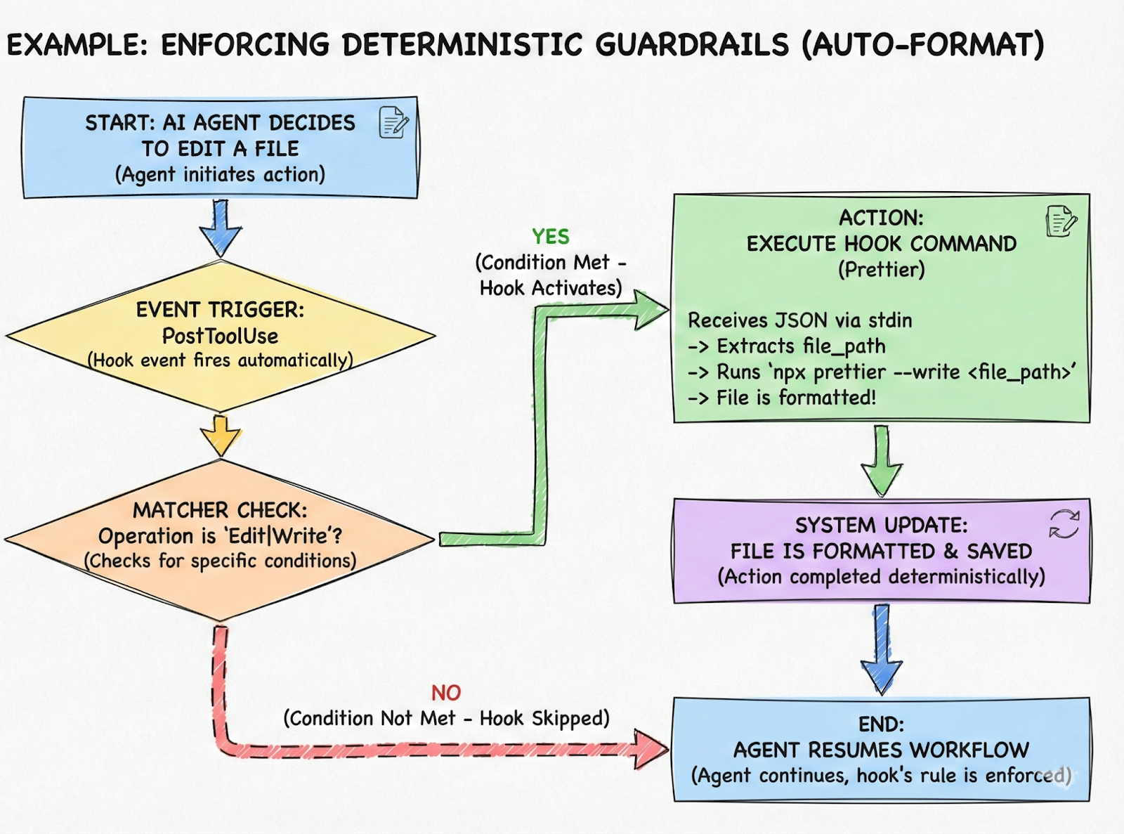 Pick one hook this week that buys back real time - auto-format on PostToolUse, deny rm -rf on PreToolUse, or gate git commit until tests are green - and ship it. Once you feel that “it runs every time” click into place, you’ll stop babysitting the agent and start designing the workflow.